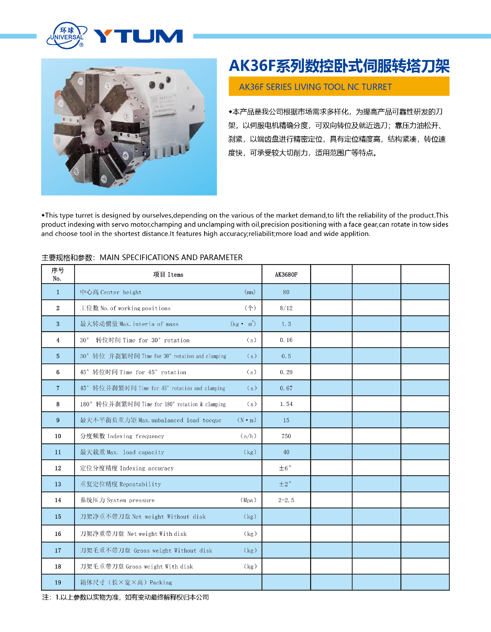 AK36F系列數控臥式伺服轉塔刀架
